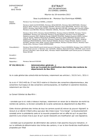 Avis sur le projet de modification des limites des cantons du département du Bas-Rhin