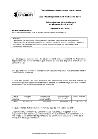 La politique de soutien au développement local des bassins de vie s'adresse aux communautés de communes titulaires d'un contrat de territoire. Le présent rapport a pour objet de proposer l'attribution d'une nouvelle tranche de subventions aux collectivités concernées.