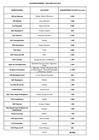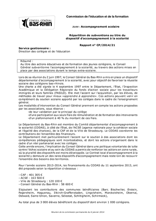 Répartition de subventions au titre du dispositif d'accompagnement à la scolarité