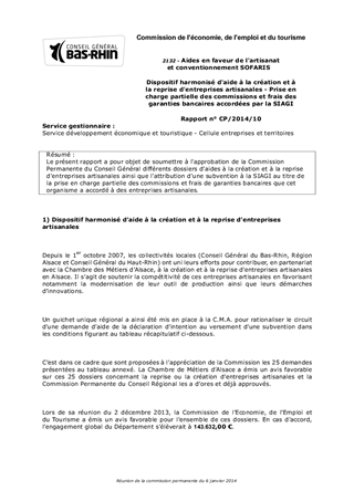 Le présent rapport a pour objet de soumettre à l'approbation de la Commission Permanente du Conseil Général différents dossiers d'aides à la création et à la reprise d'entreprises artisanales ainsi que l'attribution d'une subvention à la SIAGI au titre de la prise en charge partielle des commissions et frais de garanties bancaires que cet organisme a accordé à des entreprises artisanales.