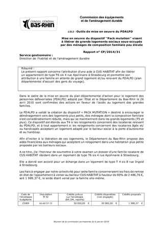 Mise en oeuvre du dispositif ''Pack mutation'' visant à libérer de grands logements sociaux sous-occupés par des ménages de composition familiale peu élevée
