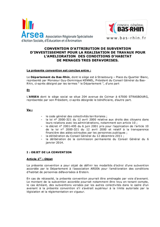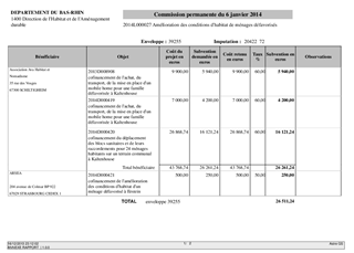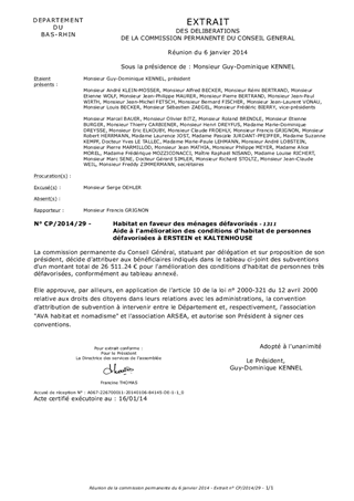 Aide à l'amélioration des conditions d'habitat de personnes défavorisées à ERSTEIN et KALTENHOUSE