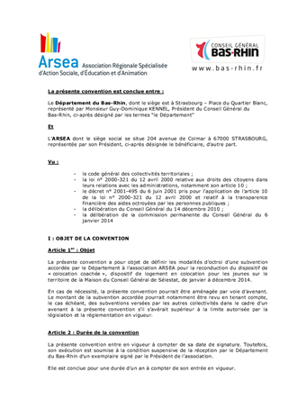 Ce rapport porte sur la demande de l'ARSEA (association régionale spécialisée d'action sociale, d'éducation et d'animation) concernant la reconduction du dispositif de 'colocation coachée' relatif à l'accompagnement de jeunes dans le cadre d'une colocation, sur la base de l'accueil de 25 jeunes, de janvier à décembre 2014. Cette action s'inscrit, d'une part, dans le cadre de la politique jeunesse initiée par le Conseil Général et, d'autre part, dans le cadre de la mise en oeuvre du plan départemental d'action pour le logement des personnes défavorisées signé le 26 avril 2010 conjointement par le Préfet, le Président du Conseil Général, le Président de la communauté urbaine de Strasbourg, le Président et le Directeur de la caisse d'allocations familiales du Bas-Rhin. L'évaluation à mi période du plan départemental de l'habitat a également montré que les jeunes présentent des handicaps accrus pour l'accès au logement.