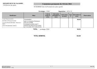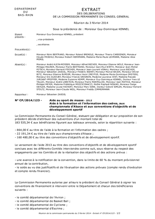 Aide à la formation et l’information des cadres, aux championnats d’Alsace et aux conventions d’objectifs et de développement sportif