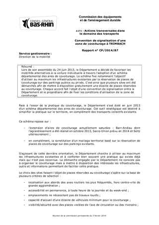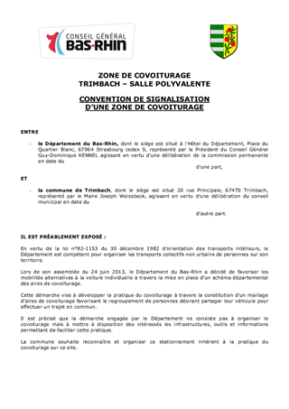 Convention de signalisation d'une zone de covoiturage à TRIMBACH