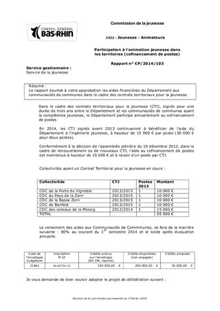 Le rapport soumet à votre approbation les aides financières du Département aux communautés de communes dans le cadre des contrats territoriaux pour la jeunesse.