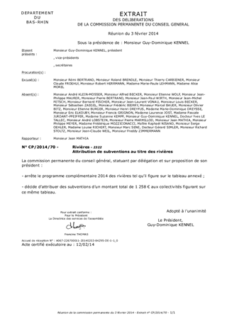 Attribution de subventions au titre des rivières