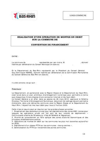 Le présent rapport a pour objet d’approuver le projet de convention de financement à intervenir entre le Département du Bas-Rhin et les communes concernées, fixant les modalités de mise en oeuvre et de financement des opérations de Montées en Débit.