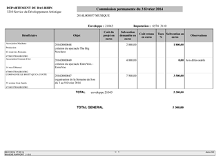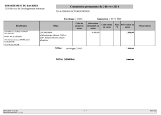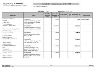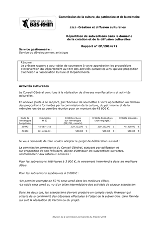 Répartition de subventions dans le domaine de la création et de la diffusion culturelles