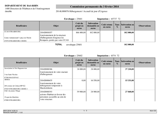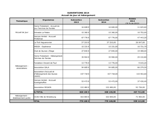 Financement 2014 des organismes en charge de l’hébergement et de l’accueil de jour