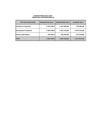 Financement 2014 des structures en charge de l’insertion professionnelle des bénéficiaires du RSA