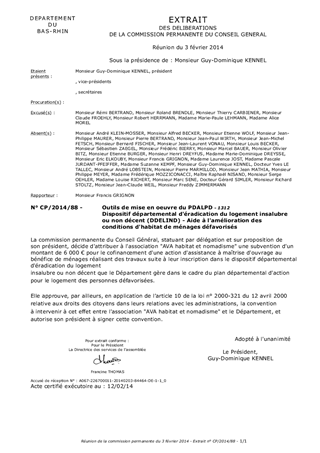Le présent rapport concerne la reconduction de la demande de l'association 'AVA habitat et nomadisme' concernant le cofinancement d'une action d'assistance à maîtrise d'ouvrage au bénéfice de ménages réalisant des travaux suite à leur inscription dans le dispositif départemental d'éradication du logement insalubre ou non décent que le Département gère dans le cadre du plan départemental d'action pour le logement des personnes défavorisées.