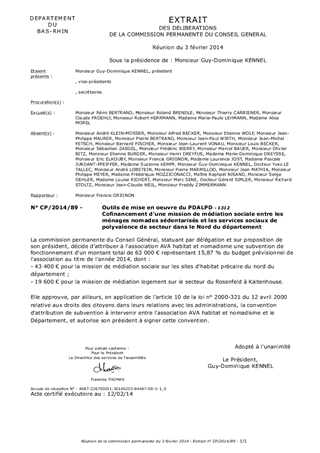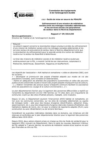 Le présent rapport concerne la reconduction depuis plusieurs années du cofinancement d'une mission de médiation sociale entre les ménages nomades sédentarisés et les services sociaux de polyvalence de secteur dans le Nord du département ainsi que la reconduction du cofinancement pour la seconde année d'un action de médiation locative sur le secteur du Rosenfeld à Kaltenhouse. Le bilan des missions de médiation sociale et de médiation locative soutenues antérieurement par le FSL, a montré l'utilité de ces interventions, notamment à Mertzwiller, Kaltenhouse, Sessenheim, Haguenau et Soufflenheim.