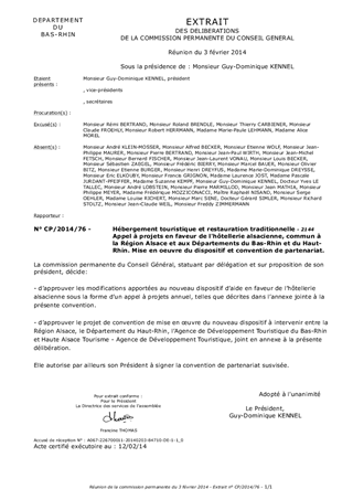 Appel à projets en faveur de l'hôtellerie alsacienne, commun à la Région Alsace et aux Départements du Bas-Rhin et du Haut-Rhin. Mise en oeuvre du dispositif et convention de partenariat.