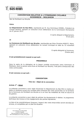 Plan Vélo 2020 - Convention en vue de la réalisation d'un itinéraire cyclable entre Molsheim et Saâles