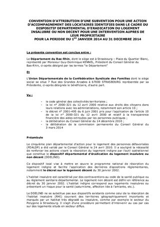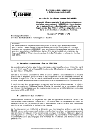 Le présent rapport concerne le renouvellement d'une action d'accompagnement des locataires concernés par le Dispositif départemental d'éradication du logement insalubre ou non-décent (DDELIND) pour une intervention auprès de leur propriétaire par deux associations : la fédération du Bas-Rhin de la Confédération nationale du logement (CNL) et l'Union départementale de la Confédération syndicale des familles (UD-CSF).