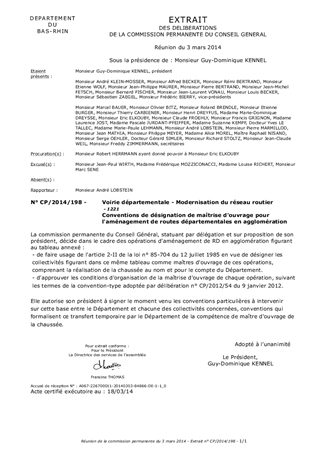 Le présent rapport vise à proposer la désignation de certaines collectivités comme maître d’ouvrage unique pour l’aménagement de routes départementales en agglomération, chargées à ce titre d’exercer les attributions relevant de la maîtrise d’ouvrage pour les chaussées départementales concernées, et à autoriser le Président à signer les conventions à intervenir entre ces collectivités et le Département (conventions ayant pour objet la désignation du maître d’ouvrage unique pour chaque opération).