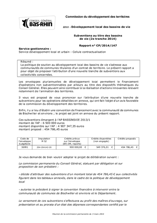 La politique de soutien au développement local des bassins de vie s'adresse aux communautés de communes titulaires d'un contrat de territoire. Le présent rapport a pour objet de proposer l'attribution d'une nouvelle tranche de subventions aux collectivités concernées.