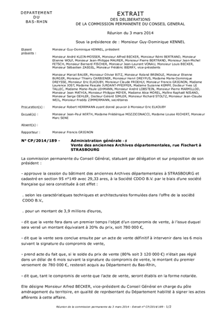 Le présent rapport a pour objet de soumettre à votre approbation les modalités financières de la vente de l'immeuble des anciennes Archives départementales rue Fischart à STRASBOURG suite à sa mise en vente sur le marché privé.