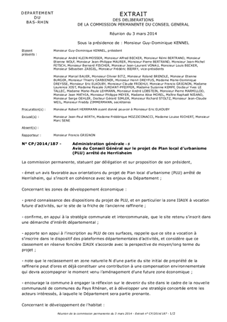 Avis du Conseil Général sur le projet de Plan local d’urbanisme (PLU) arrêté de Herrlisheim