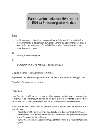Actualisation du texte du pacte d'actionnaires de ''La Strasbourgeoise Habitat''