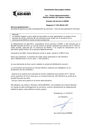 Cession de terrain à ROHR