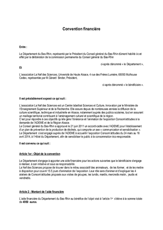 Les récentes évolutions réglementaires renforcent, au travers des lois Grenelle, la mise en place d'actions de prévention des déchets par les Départements et par les EPCI de collecte. Le Conseil Général a approuvé le 21 juin 2011 un accord-cadre avec l'ADEME pour la mise en oeuvre d'un plan départemental de prévention. C'est dans ce cadre qu'il est proposé d'attribuer une subvention à l'association La Nef des Sciences pour l'animation de l'exposition Consom'attitudes prévue à l'Hôtel du Département.