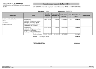 Le présent rapport concerne les demandes d’aides financières présentées par la SIBAR, dans le cadre de la délégation des aides à la pierre de l’Etat et du dispositif départemental d’aide à la création de logements locatifs sociaux. A ce titre, 2 dossiers relatifs à des opérations financées en prêt locatif à usage social (PLUS) sont présentés dans les annexes au rapport et concernent les communes de Donnenheim et Truchtersheim.