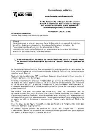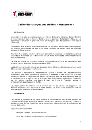 Pacte de Réussite en faveur des allocataires du RSA -Redéfinition des cahiers des charges des ateliers Passerelles et des opérateurs de l’accompagnement professionnel.