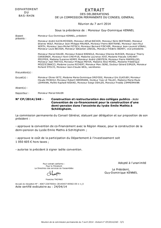 Convention de co-financement pour la construction d’une demi-pension dans l’enceinte du lycée Emile Mathis à Schilitigheim.