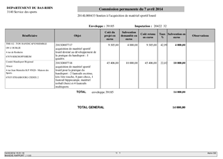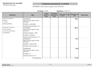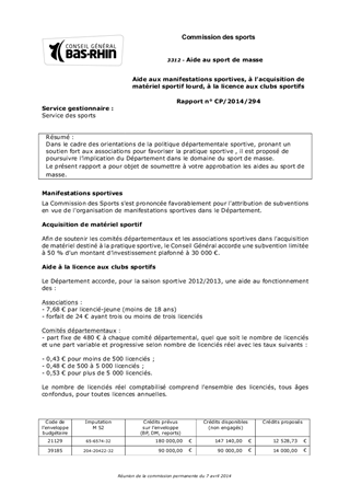 Aide aux manifestations sportives, à l’acquisition de matériel sportif lourd, à la licence aux clubs sportifs