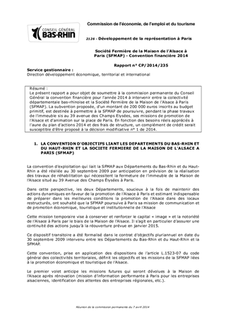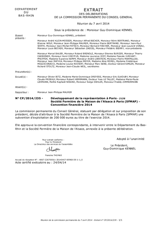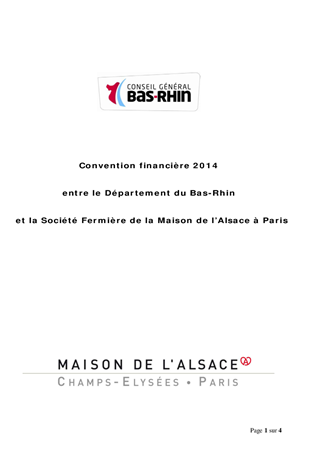 Société Fermière de la Maison de l'Alsace à Paris (SFMAP) - Convention financière 2014