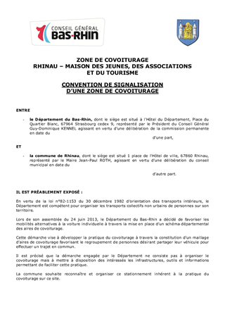 Lors de son assemblée du 24 juin 2013, le Département a décidé de favoriser les mobilités alternatives à la voiture individuelle à travers l'adoption d'un schéma départemental des aires de covoiturage. Le schéma fixe notamment l'objectif d'utiliser au maximum les infrastructures existantes par la réservation de places de covoiturage sur des parkings publics ou privés. C'est ainsi que plusieurs sites ont été démarchés afin de mettre à disposition gratuitement une dizaine de places réservées au covoiturage. Chaque accord fait l'objet d'une convention de signalisation entre le Département et le propriétaire afin de fixer les conditions d'utilisation de la zone de covoiturage.