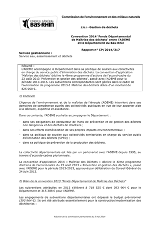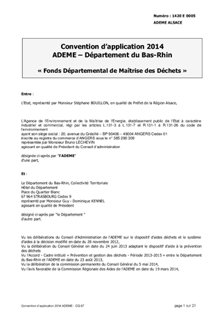 Convention 2014 'Fonds Départemental de Maîtrise des déchets' entre l’ADEME et le Département du Bas-Rhin