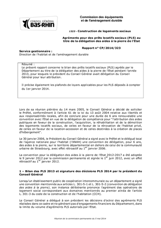 Le présent rapport concerne le bilan des prêts locatifs sociaux (PLS) agréés par le Département au titre de la délégation des aides à la pierre de l'Etat pendant l’année 2013, pour lesquels le président du Conseil Général avait délégation du Conseil Général pour leur attribution. Il précise également les plafonds de loyers applicables pour les PLS déposés à compter du 1er janvier 2014.