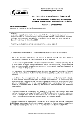 Le présent rapport concerne les demandes d'aide financière présentées par divers particuliers dans le cadre du dispositif départemental d'aide à l'adaptation du logement en faveur des personnes handicapées et/ou âgées mis en place lors de la réunion du Conseil Général du 12 décembre 1995. A ce titre, vingt dossiers sont présentés dans l'annexe au rapport.