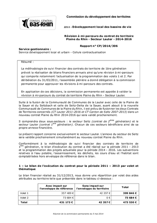 Révision à mi-parcours du contrat de territoire Plaine du Rhin - Secteur Lauter - 2014-2016