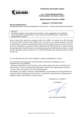 Le présent rapport a pour objet de soumettre à votre approbation les modalités d'une acquisition de parcelles sur le ban communal de SAND dans le cadre d'une régularisation foncière.