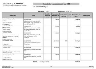 Le présent rapport a pour objet de soumettre à votre approbation les propositions d'intervention du Département ainsi que deux propositions qui s'inscrivent dans la charte départementale des festivals.