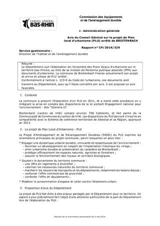 Avis du Conseil Général sur le projet de Plan local d’urbanisme (PLU) arrêté de BREITENBACH