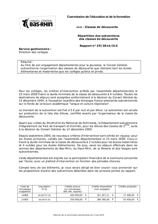 Au titre de son engagement départemental pour la jeunesse, le Conseil Général subventionne l'organisation des classes de découverte que réalisent tant les écoles élémentaires et maternelles que les collèges publics et privés.