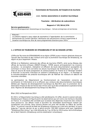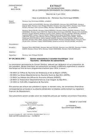 Le présent rapport a pour objet de soumettre à l'approbation de la commission permanente du Conseil Général l'attribution de subventions à divers organismes à vocation touristique au titre de leurs programmes d'actions pour 2014.