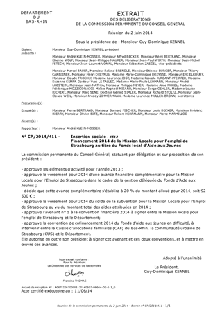 Financement 2014 de la Mission Locale pour l’emploi de Strasbourg au titre du Fonds local d’Aide aux Jeunes