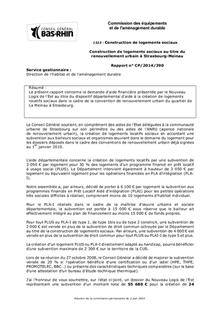 Le présent rapport concerne la demande d'aide financière présentée par le Nouveau Logis de l'Est au titre du dispositif départemental d'aide à la création de logements locatifs sociaux dans le cadre de la convention de renouvellement urbain du quartier de La Meinau à Strasbourg.