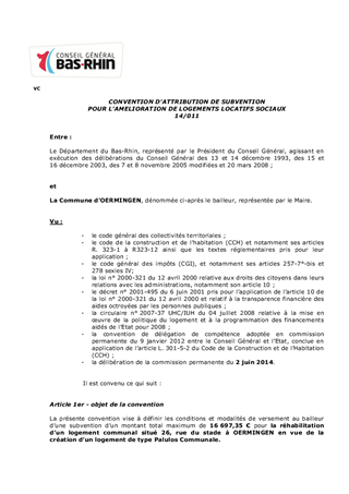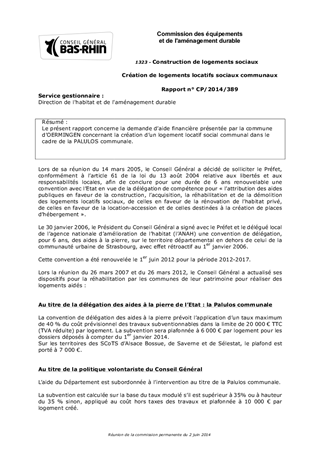 Le présent rapport concerne la demande d’aide financière présentée par la commune d’OERMINGEN concernant la création d’un logement locatif social communal dans le cadre de la PALULOS communale.