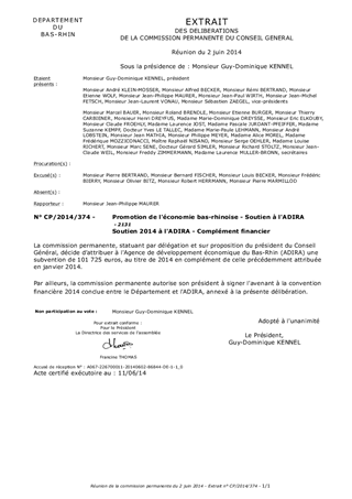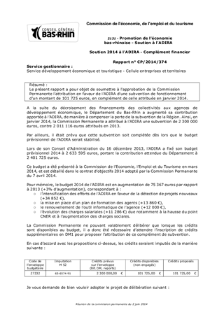 Le présent rapport a pour objet de soumettre à l'approbation de la Commission Permanente l'attribution en faveur de l'ADIRA d'une subvention de fonctionnement d'un montant de 101 725 euros, en complément de celle attribuée en janvier 2014.