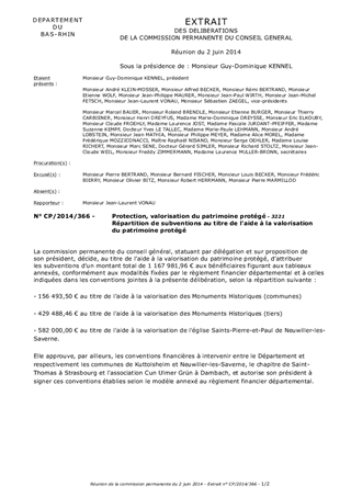 Le présent rapport a pour objet de soumettre à votre approbation différents dossiers de demandes d’aides financières départementales dans le cadre de la protection et la valorisation du patrimoine protégé.