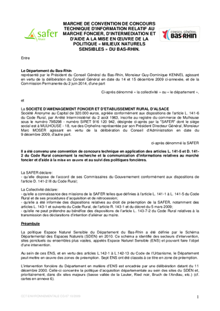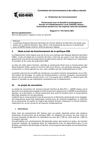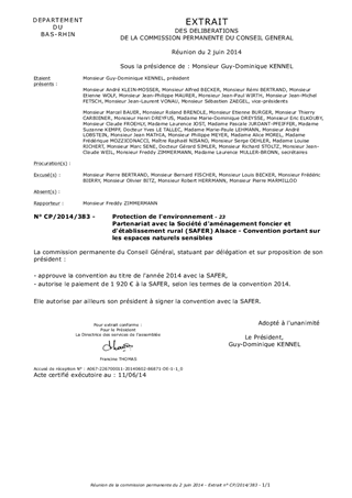La politique Espaces Naturels Sensibles du Conseil Général du Bas-Rhin est basée pour partie sur la maîtrise foncière. Pour 2014, il est proposé de poursuivre le partenariat avec la SAFER Alsace initié en 2010 et poursuivi depuis.