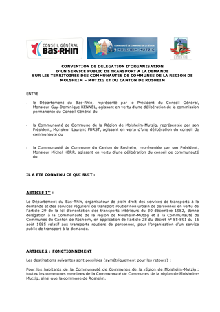 Ce rapport a pour objet de proposer le renouvellement des délégations de compétence relatives à l'organisation de transports sur les territoires des communautés de communes de Barr-Bernstein, Sainte-Odile, Rosheim et Molsheim-Mutzig.