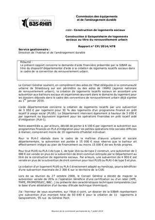 Le présent rapport concerne la demande d'aide financière présentée par la SIBAR au titre du dispositif départemental d'aide à la création de logements locatifs sociaux dans le cadre de la convention de renouvellement urbain.